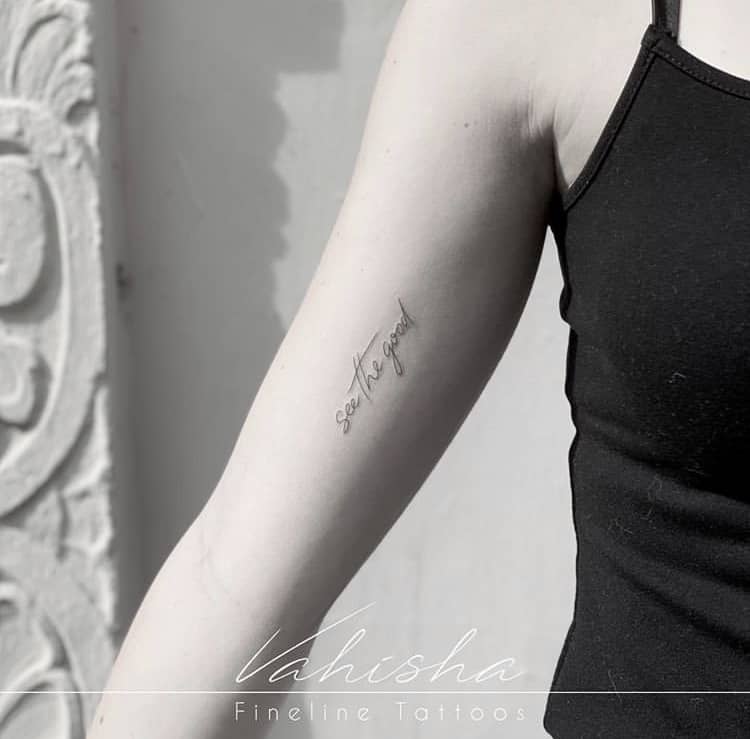 More captivating line art phrase tattoos.